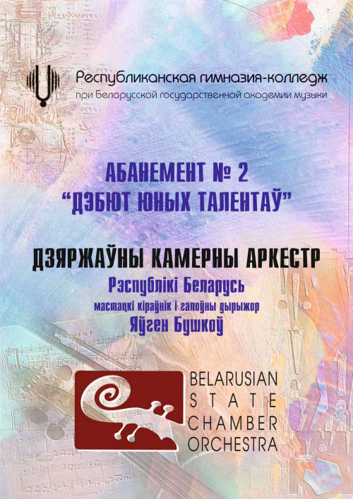 Абонемент № 2 "Дебют юных талантов" Государственный камерный оркестр Республики Беларусь Главный дирижер - заслуженный артист России Евгений Бушков Солисты - учащиеся Республиканского музыкального колледжа Музыковед - Анатолий ПорецкийAdd to calendar