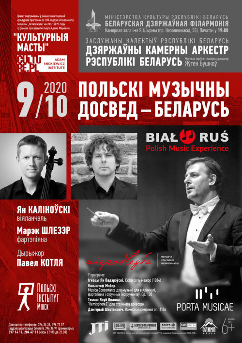 Дирижёр – Павел Котля Ян Калиновски виолончель Марек Шлезер фортепиано В программе: И.Я.Падеревский – Сюита Соль мажор (1884) Кш.Мейер – “Musica Concertante” для виолончели, фортепиано и струнных инструментов, ор.130 Т.Я.Опалка – “Hemisphere2” для струнного оркестра Д.Шостакович – Камерная симфония до минор для струнного оркестра, ор.110аAdd to calendar
